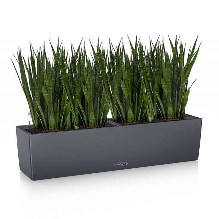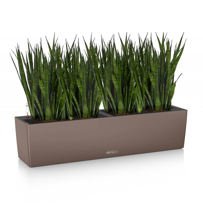 Diese Blumentöpfe haben eine optimale Bewässerung durch ein fortschrittliches Bewässerungssystem. Dieses Bewässerungssystem reguliert die Wassermenge für die Pflanze. So können Sie nie zu viel oder zu wenig Wasser an die Pflanze geben. Ein praktischer Wasserzähler zeigt an, wann das Reservoir nachgefüllt werden muss.