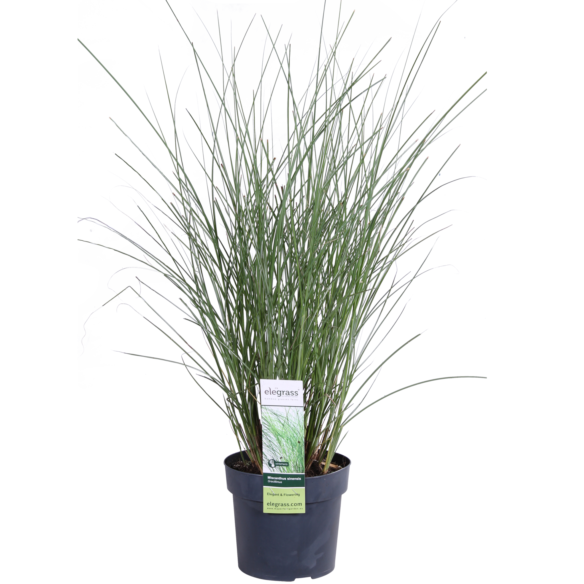 Miscanthus sinensis 'Gracillimus', im Niederländischen meist als Prachtschilf bezeichnet, ist eine der am häufigsten angebauten Miscanthus-Arten. Das sommergrüne Prachtschilf hat eine buschige, aufrechte Form mit sehr schmalen, linealischen, mittelgrünen Blättern mit einem weißen Mittelstreifen, die sich im Herbst strohgelb färben. Miscanthus sinensis 'Gracillimus' blüht (sporadisch ) von August bis Oktober mit kupferfarbenen Blütenrispen, die sich später in der Saison, wenn die Samen reifen, silbrig-weiß färben. Dieses schöne Schilfrohr bevorzugt einen sonnigen Standort und einen gut durchlässigen, leicht feuchten, mäßig fruchtbaren Boden. Miscanthus sinensis "Gracillimus" ist gut winterhart und verträgt auch Trockenheit, sobald es sich etabliert hat. Er verträgt Luftverschmutzung und Meeresbrisen.