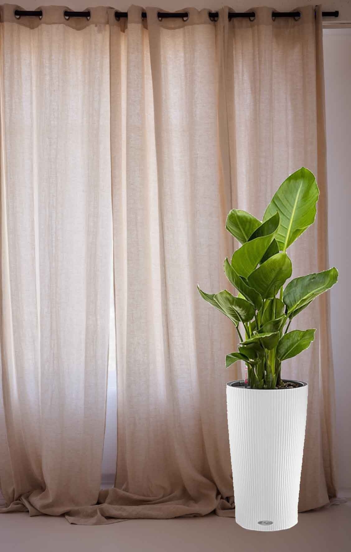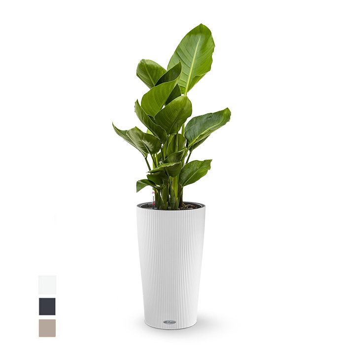 Diese Blumentöpfe verfügen über eine optimale Bewässerung durch ein fortschrittliches Bewässerungssystem. Dieses Bewässerungssystem reguliert die Wassermenge, die zur Pflanze gelangt. Dadurch kann es nicht vorkommen, dass Sie die Pflanze zu viel oder zu wenig gießen. Anhand eines praktischen Wasserzählers können Sie leicht erkennen, wann der Behälter nachgefüllt werden muss. Die Blumentöpfe werden inklusive Topf-Bewässerungsset geliefert. Dazu gehören der Innentopf und der Bewässerungsbehälter. Sobald Ihre Pflanze in diesem Blumentopf angepflanzt ist, müssen Sie sich um nichts mehr kümmern.