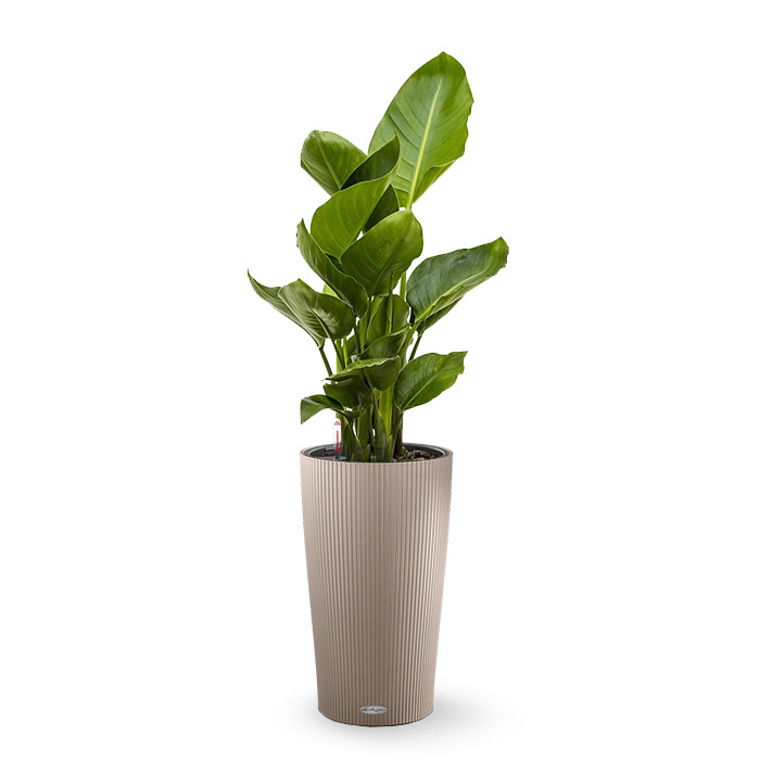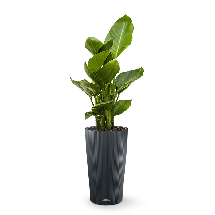 Die Strelitzia ist aufgrund ihrer schönen Fächerblätter, die imposant nach oben wachsen, eine äußerst beliebte Pflanze. Diese Pflanze ist daher häufig ein Blickfang im Raum und bringt die Atmosphäre des Dschungels ins Haus.