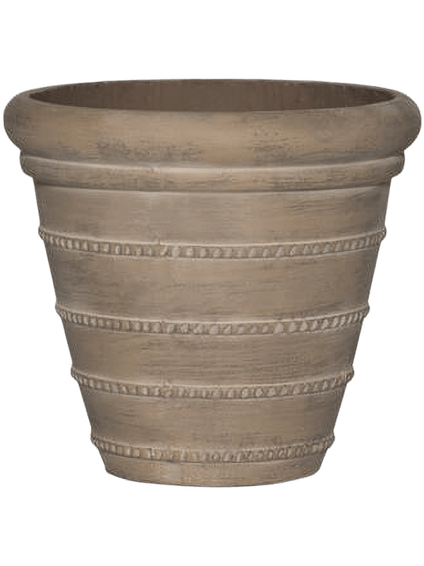 Pottery Pots entwickelt hochwertige Pflanzgefäße, die für jeden Raum geeignet sind, von Jumbo-Pflanzgefäßen bis hin zu kleinen Accessoires. Die Treasure-Kollektion hat einen klassischen und anmutigen Look. Die Pflanzgefäße sehen aus, als wären sie aus Terrakotta, aber das Material ist Ficonstone, das aus Fiberglas, Zement und Sand besteht.