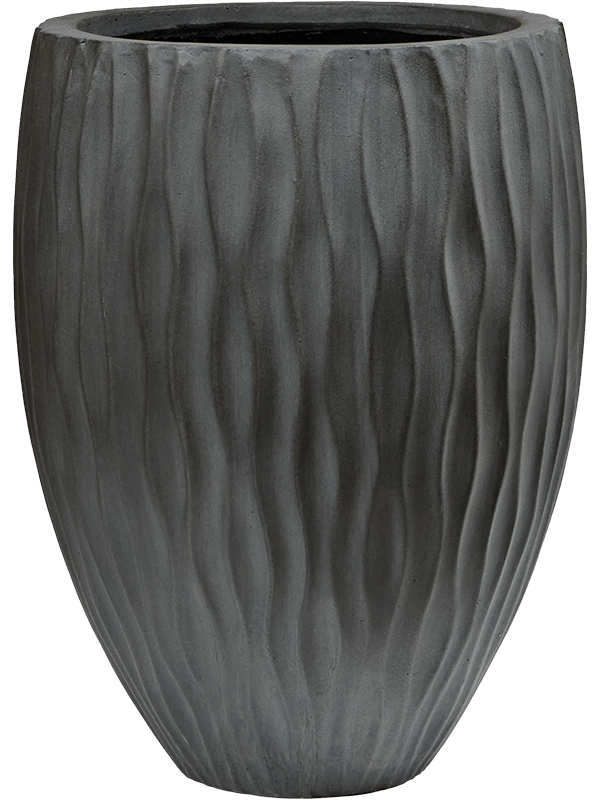 Pottery Pots entwickelt hochwertige Pflanzgefäße, die für jeden Raum geeignet sind, von Jumbo-Pflanzgefäßen bis hin zu kleinen Accessoires. Die Pflanzgefäße aus der Wave-Kollektion sind für das einzigartige vertikale Wellenmuster bekannt. Dies sorgt für einen dynamischen Effekt. Die Pflanzgefäße sind aus Ficonstone, einer Mischung aus Zement, Sand und Fiberglas, hergestellt. Das macht sie leicht.