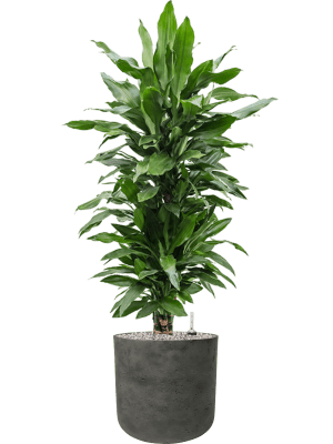 Onze basis opmaak bestaat uit semi hydro, dat betekent dat wij vanaf een potmaat van 20 centimeter en groter, de planten rondom de kwekersaarde afstrooien met hydrokorrels. Hierbij heeft u als extra keuze om een watermeter toe te voegen en of u de bovenkant van de pot wilt laten afstrooien met houtsnippers.