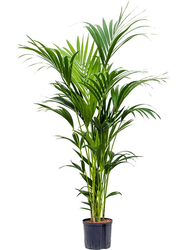 Kentia (Howea) forsteriana zeichnet sich durch lange, elegante Palmenblätter aus, die eine tiefgrüne Farbe haben. Diese Palme kann eine Höhe von bis zu drei Metern erreichen, wächst aber langsam, etwa 20 cm pro Jahr. Die Kentia-Palme wird für ihre Toleranz gegenüber wenig Licht geschätzt, was sie zu einer idealen Pflanze für den Innenbereich macht.
