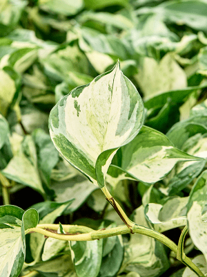 Scindapsus 'Manjula variegata' zeichnet sich durch mehrere bemerkenswerte Merkmale aus. Diese Zimmerpflanze ist bekannt für ihre schönen gewellten und gezähnten Blätter, die ein helles cremefarbenes und grünes Mosaikmuster aufweisen. Die Blätter können bis zu 30 cm lang werden. Die Wurzeln dieser Pflanze lassen sich leicht an unterstützenden Oberflächen befestigen, so dass sie klettern oder hängen kann.