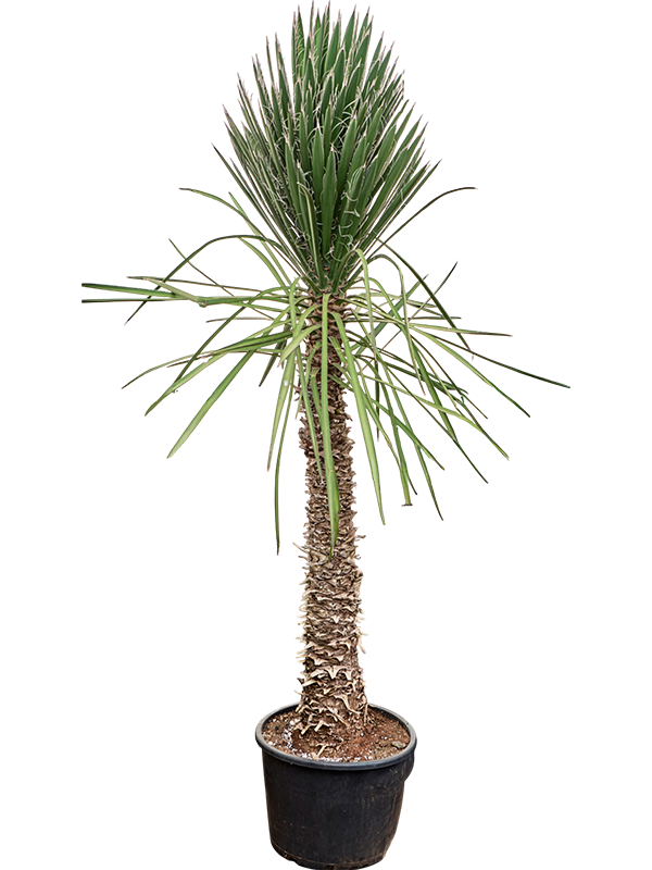 Die Yucca filifera stammt ursprünglich aus Italien und passt gut in einen hellen, geräumigen Raum. Diese Pflanze eignet sich hervorragend als Blickfang in einem Wohnzimmer oder Büro. Ein Styling-Tipp ist, die Yucca mit einem schönen Topf in einer neutralen Farbe zu kombinieren, damit die Aufmerksamkeit ganz auf die schönen Blätter gelenkt wird. Fügen Sie einige dekorative Steine oder einen schönen Sockel hinzu, um einen zusätzlichen Akzent zu setzen.