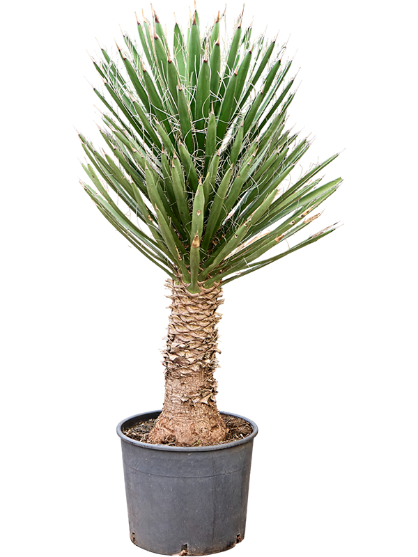 Was die Pflege angeht, benötigt die Yucca filifera nicht viel, um zu gedeihen. Diese Pflanze bevorzugt einen hellen Standort, verträgt aber auch etwas Schatten. Achten Sie darauf, die Pflanze regelmäßig zu gießen, lassen Sie jedoch die Erde zwischen den Wassergaben gut trocknen, um Wurzelfäule zu vermeiden. Diese robuste Pflanze verträgt Temperaturen bis zu -5 °C, was sie ideal für verschiedene klimatische Bedingungen macht. Bitte beachten Sie, dass Sie sie im Winter an einen geschützten Ort stellen sollten.